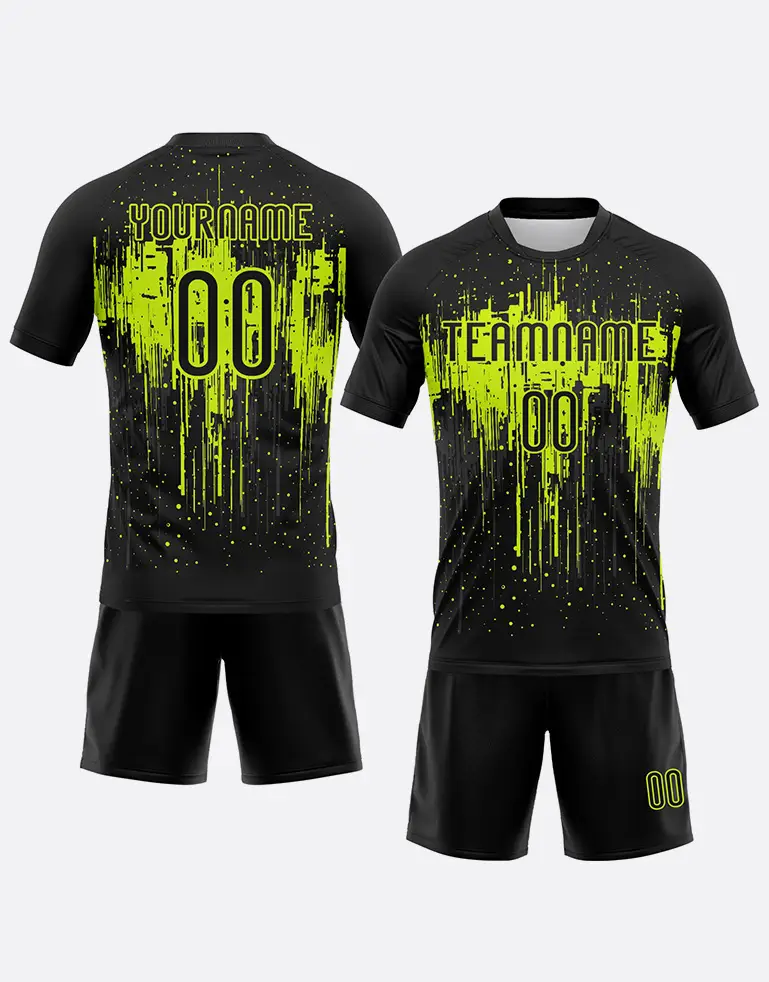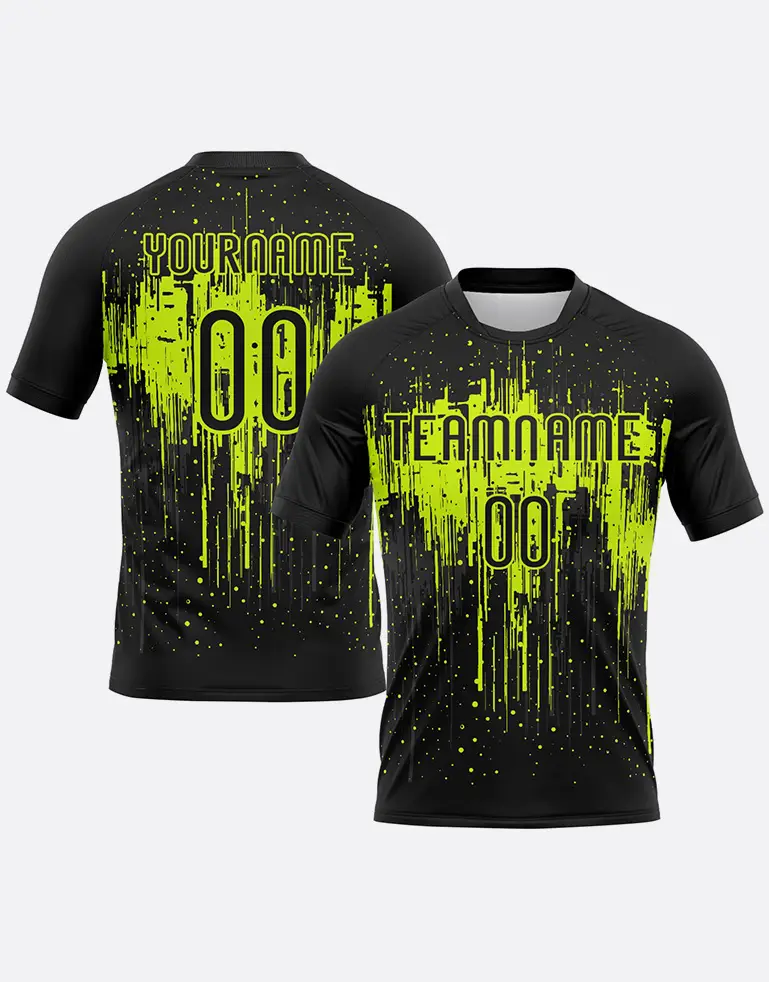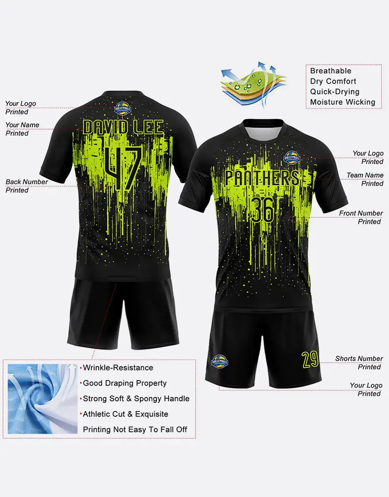 VOLLEYBALL CUSTOM BLACK NEON GREEN DRIPPING SPLATTER ART SUBLIMATION UNIFORM/JERSEY KURD INTERNATIONAL BESPOKE SPORTSWEAR