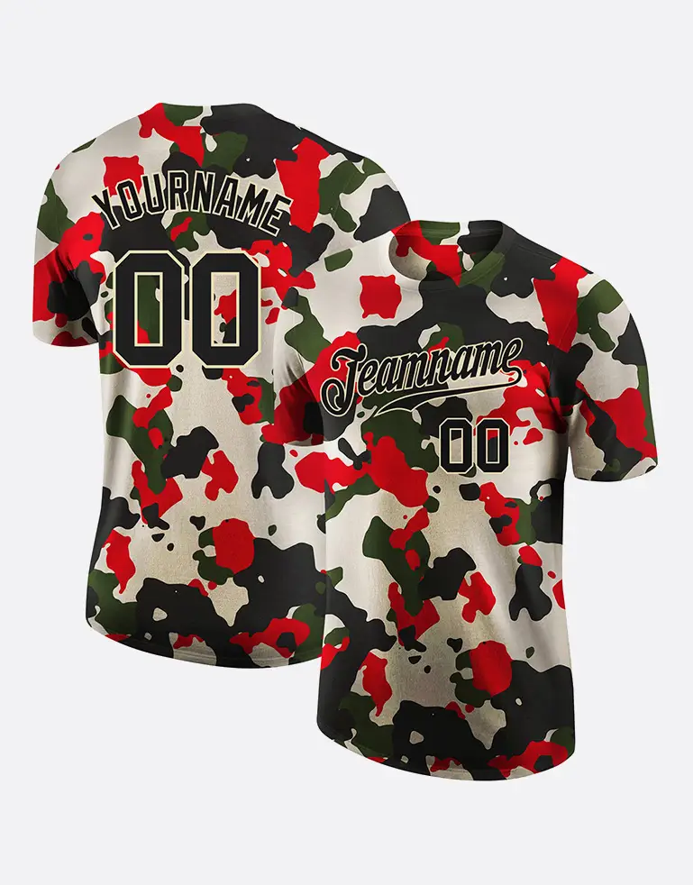 TEE SHIRT CUSTOM CAMO BLACK-CREAM PERFORMANCE SALUTE TO SERVICE SUBLIMATION KURD INTERNATIONAL BESPOKE SPORTSWEAR