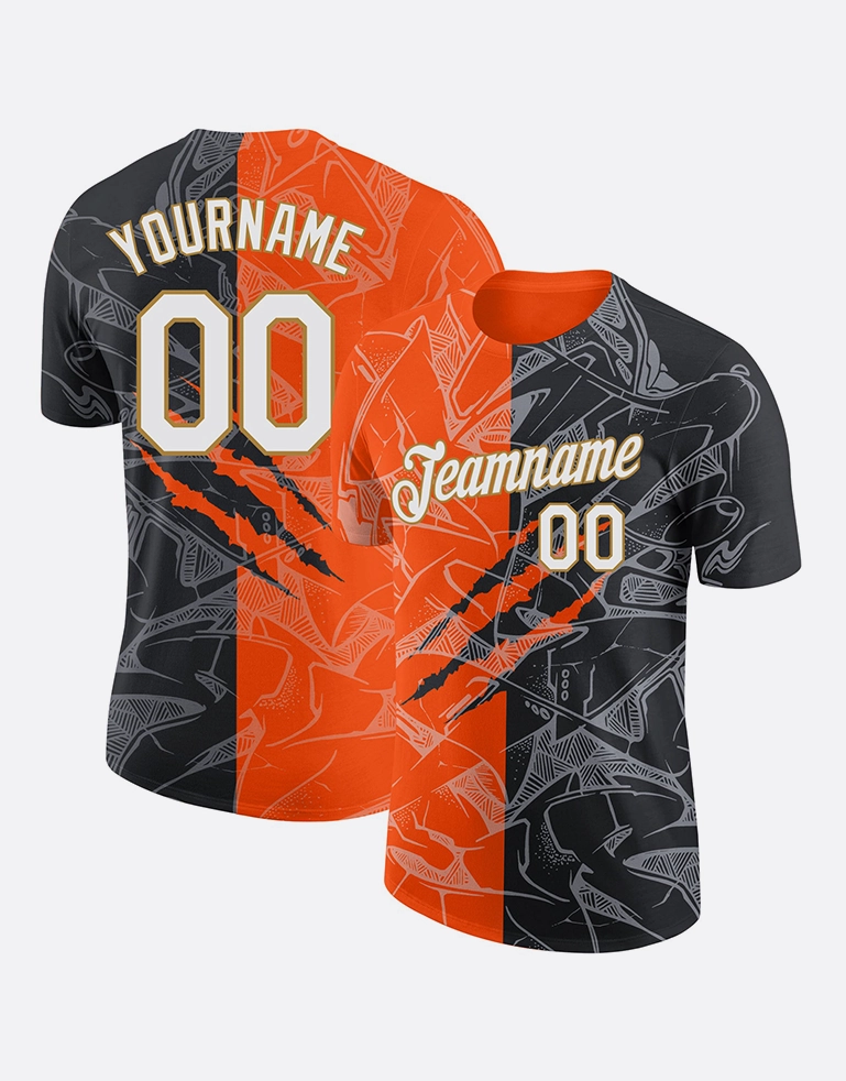 TEE SHIRT CUSTOM GRAFFITI PATTERN WHITE-OLD GOLD SCRACTCH 3D PERFORMANCE SUBLIMATION KURD INTERNATIONAL BESPOKE SPORTSWEAR