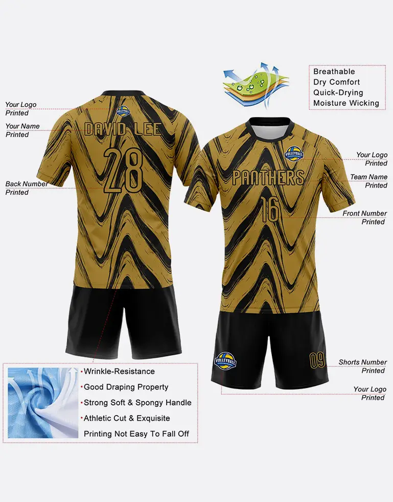 VOLLEYBALL CUSTOM OLD GOLD BLACK FLUID SUBLIMATION UNIFORM/JERSEY KURD INTERNATIONAL BESPOKE SPORTSWEAR