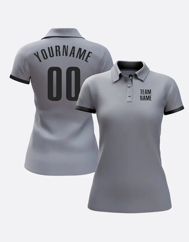 CUSTOM WOMEN’S GRAY NAVY POLO SHIRT KURD INTERNATIONAL BESPOKE SPORTSWEAR