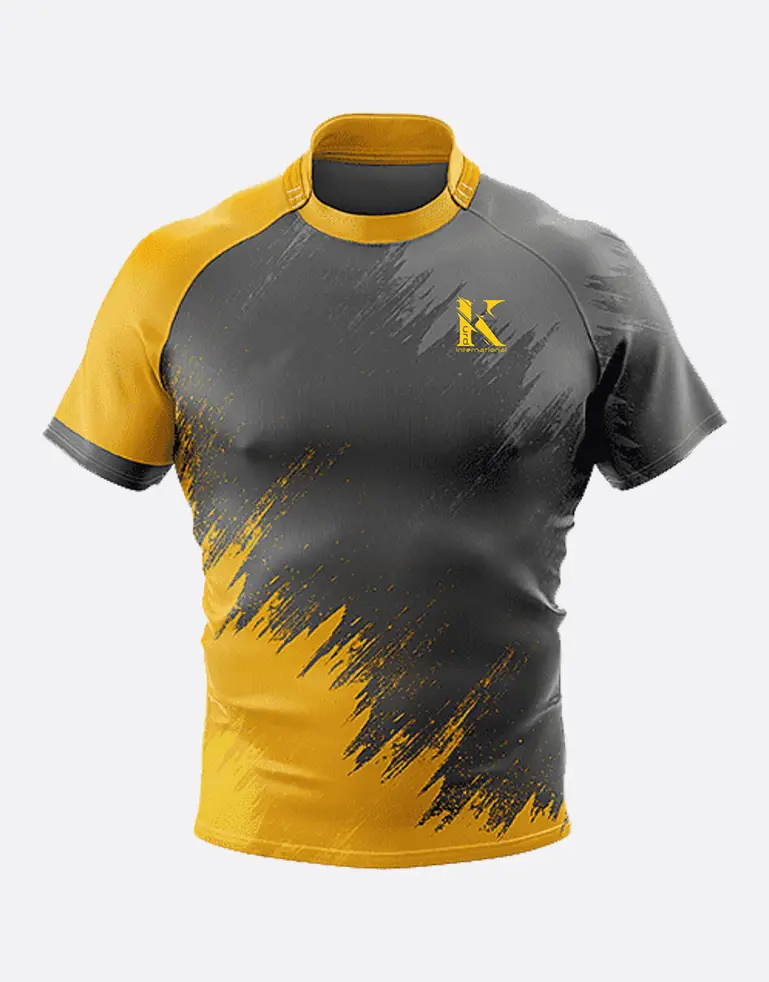SUBLIMATED RUGBY SHIRT GRAY YELLOW KURD INTERNATIONAL BESPOKE SPORTSWEAR