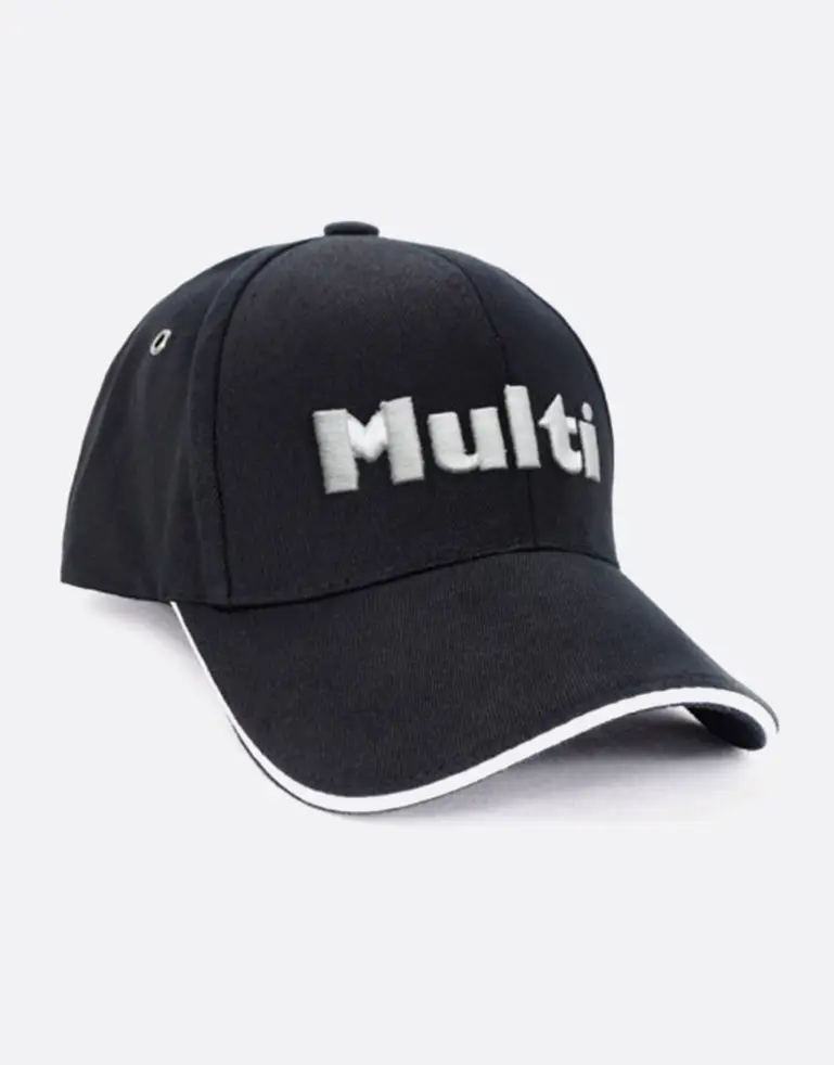 Each Kurd International Custom Structured 6 Panel With Pre Curved Peak Cap Black with the following features: